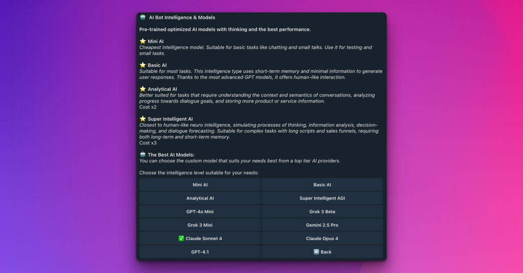 Тщательно выбирая интеллект вашего AI-бота, вы можете оптимизировать его производительность для ваших конкретных задач, эффективно управляя затратами.