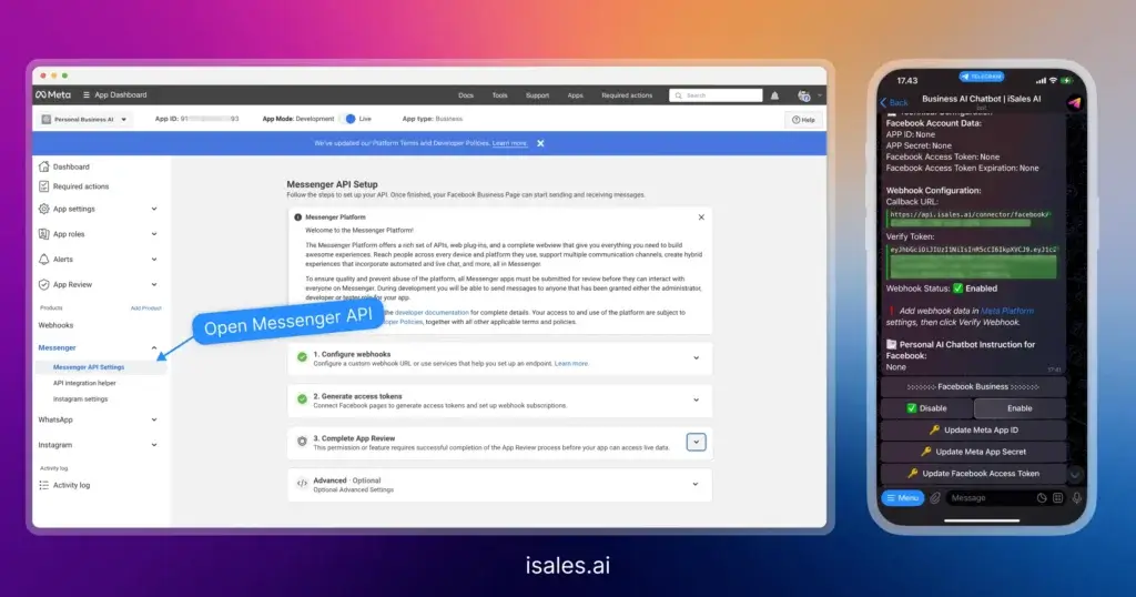 By following these steps, you can successfully integrate your iSales AI Chatbot with your Facebook Business Page Messenger, automating responses and enhancing engagement with your Facebook audience. Always consult the latest official documentation from both Meta and iSales AI as platform interfaces and procedures can evolve.